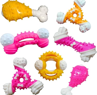 Feitos em borracha ou nylon, são perfeitos para cães que adoram mastigar.
